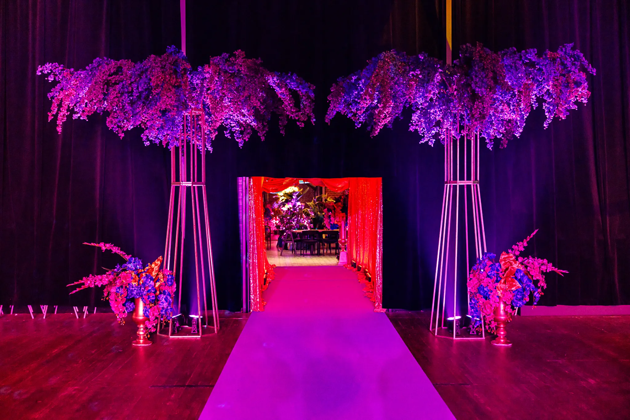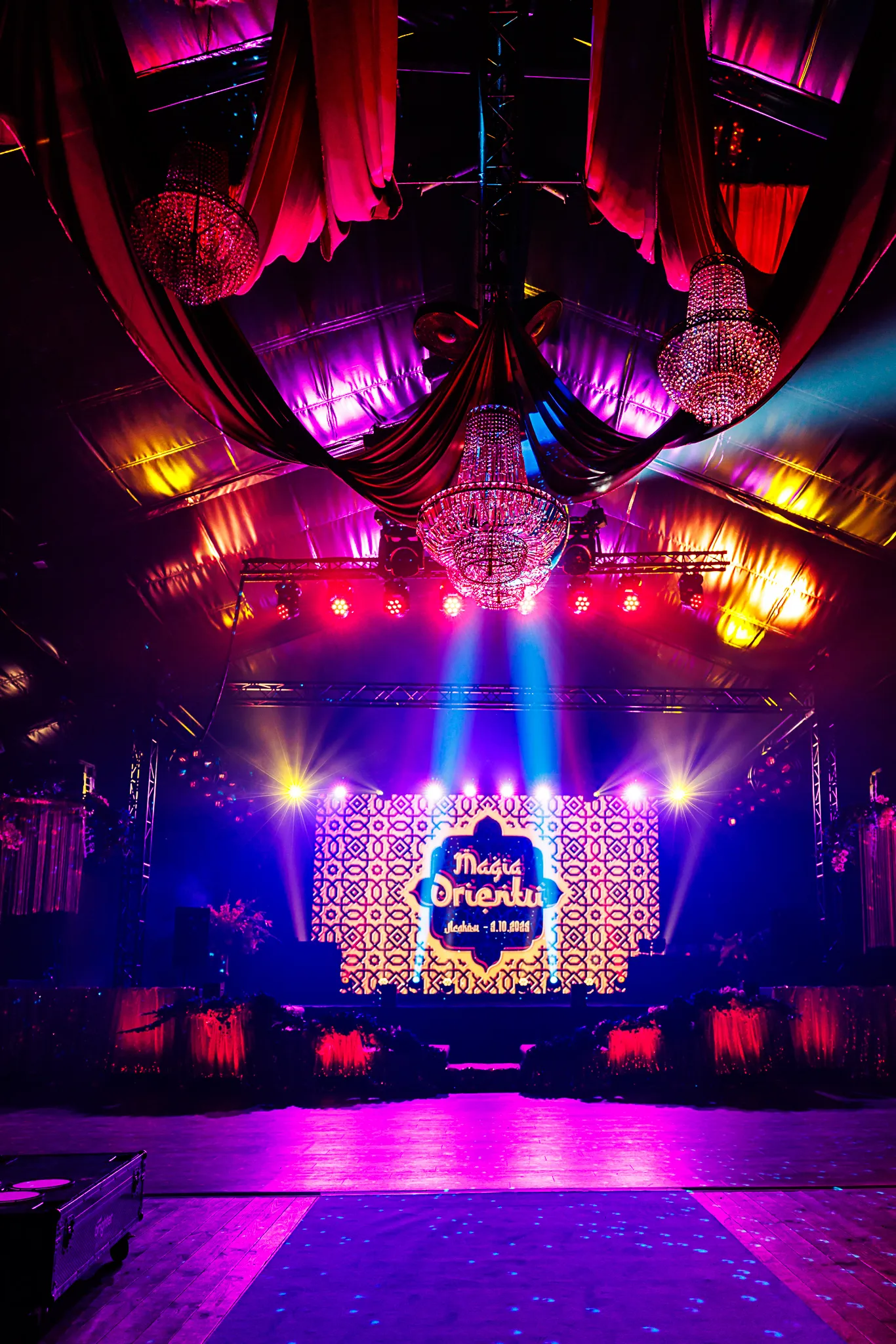 Kolorowe refleksy, soczyste kolory przypominały o barwności orientalnych wnętrz. Delikatne podświetlenie detali pozwoliło wydobyć strukturę przestrzeni – niczym gra świateł na mozaikach i tkaninach dawnych pałaców.