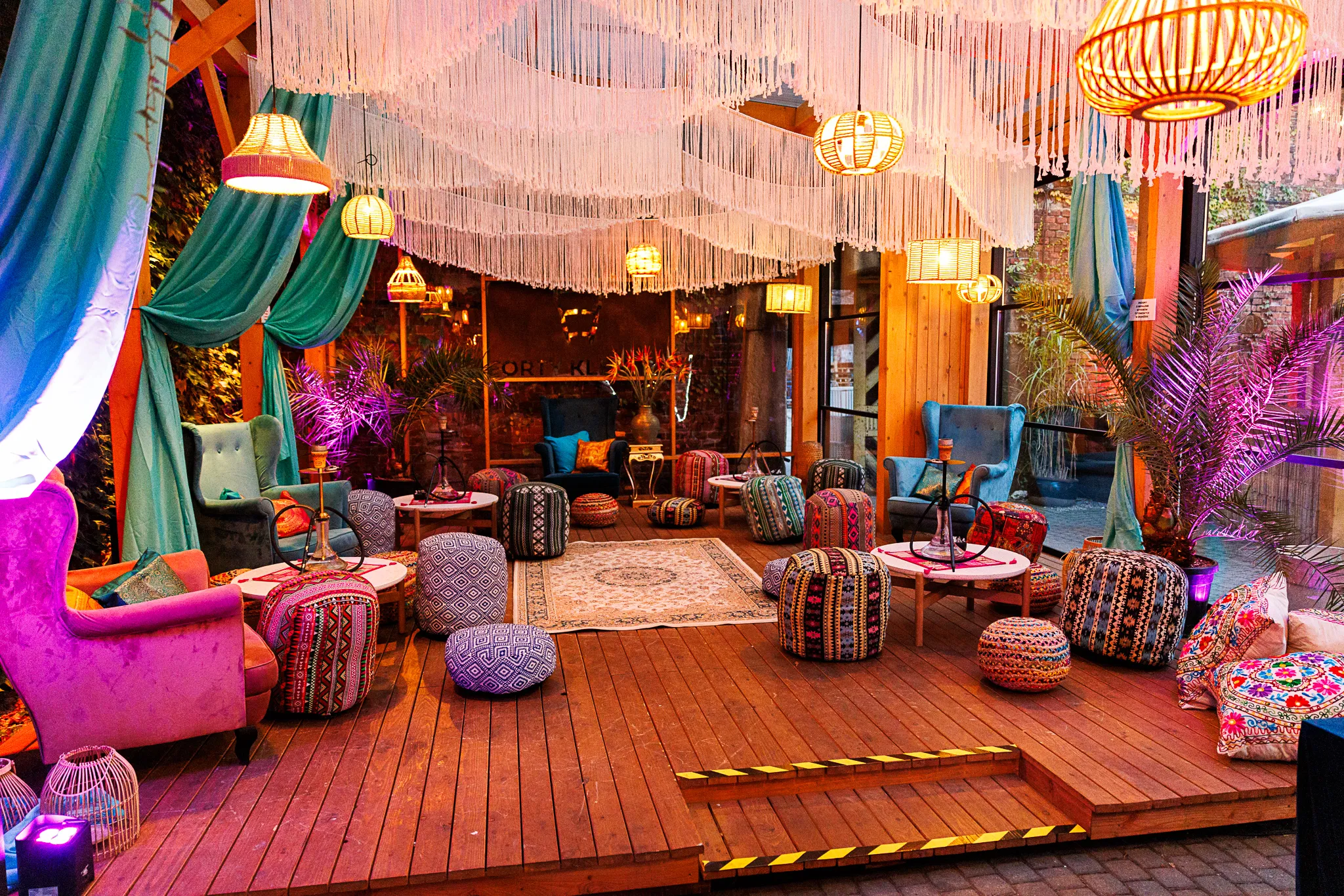 W EasyLight wierzymy, że światło nie tylko oświetla przestrzeń, ale ją definiuje. Dzięki oświetleniu bateryjnemu, które działa nawet do 16 godzin na jednym ładowaniu, mogliśmy swobodnie modelować atmosferę – bez kabli, bez ograniczeń. Lampy ustawione wśród tkanin, roślin i wielkoformatowów elementów dekoracji tworzyły miękkie przejścia między strefami, nawiązując do architektury Orientu, gdzie światło przenika przez ażurowe wzory, filtrując rzeczywistość w subtelny sposób.