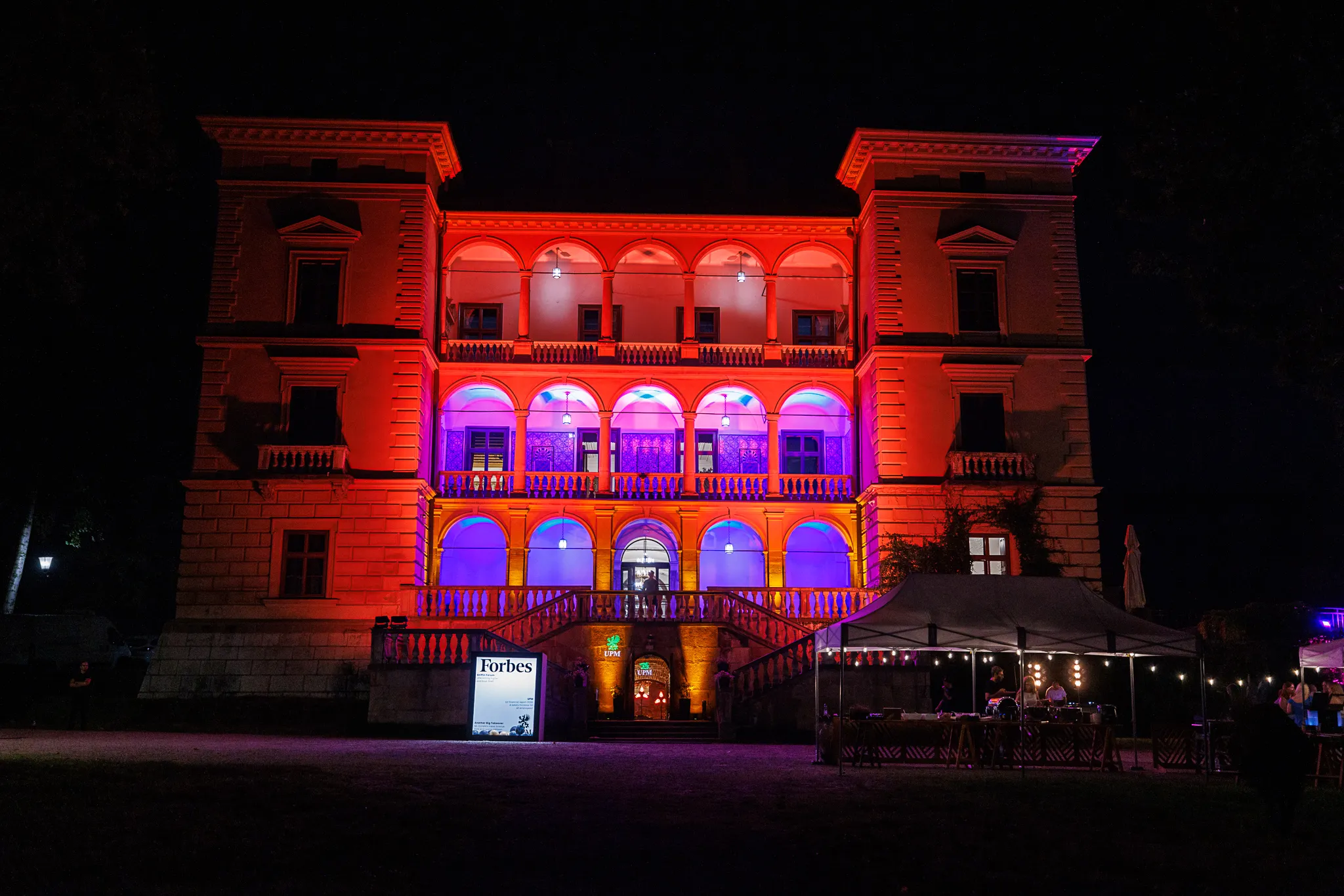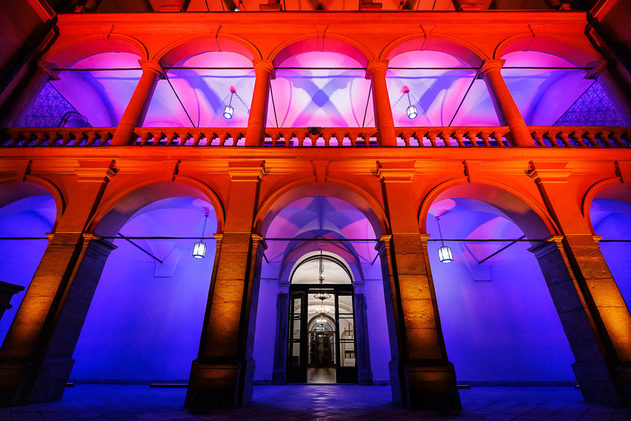 Oświetlenie architektoniczne fasady to idealny sposób, by zachwycić gości jeszcze zanim wejdą do środka. Jasno oświetlona bryła budynku, podkreślone detale architektoniczne oraz gra światła i cienia sprawiają, że przestrzeń staje się bardziej wyrazista, a wydarzenie zyskuje prestiżowy charakter. Uczestnicy imprezy od razu czują się częścią czegoś wyjątkowego – zanim przekroczą próg, mają już poczucie, że są w miejscu, które zostało starannie przygotowane na ich przybycie.