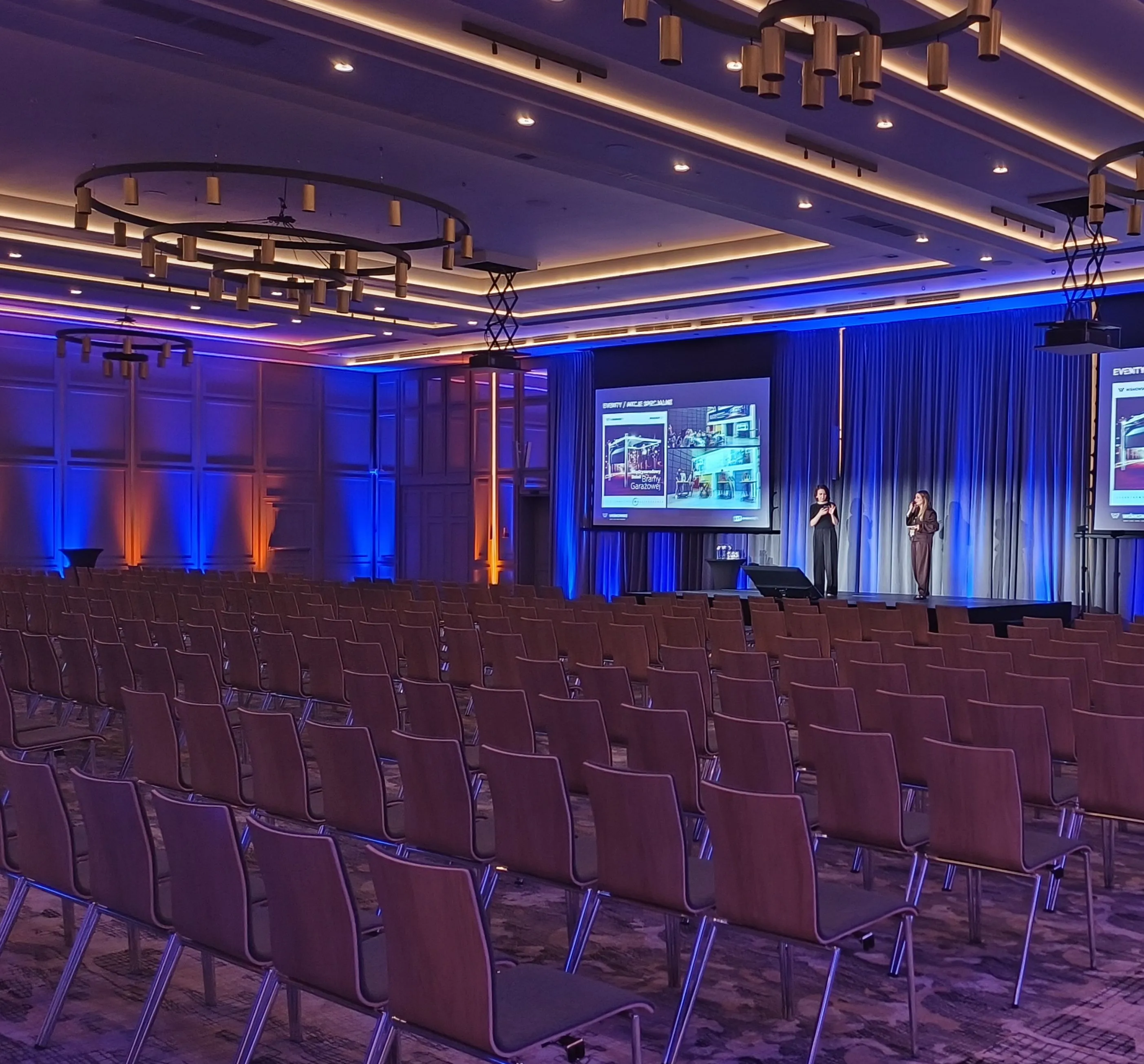 - Dynamika pracy: Oprawa musiała uwzględniać wystąpienia 30 prelegentów, wymagających przy jednoczesnym zachowaniu kontrastu dla treści wyświetlanych na ekranach LED/projekcyjnych.